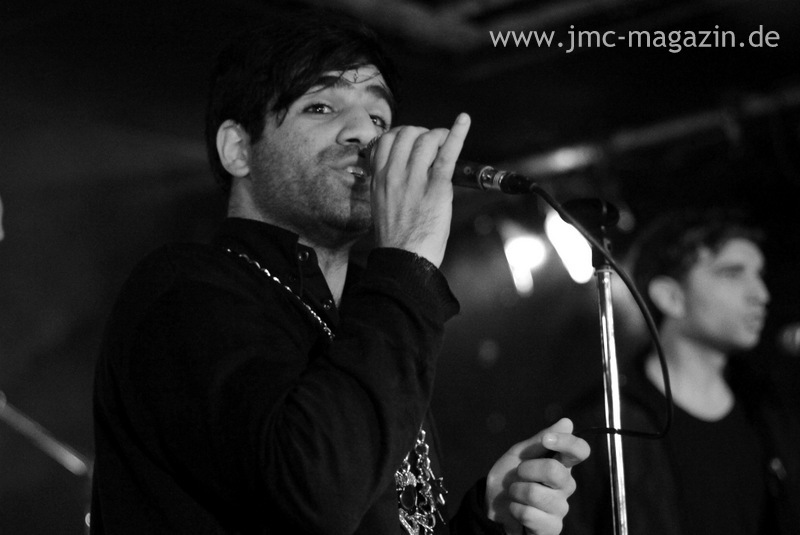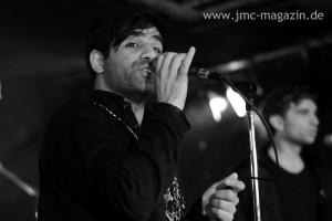 Mit immerhin einer Stunde Verspätung betreten dann endlich Timid Tiger die Bühne des gut gefüllten Luxors – Sänger Keshav stilecht mit Sonnenbrille und barfuß – und die zur drückenden Luft unschlagbar gut passenden Klänge zu „The Sun Goes Down“ ertönen. Sagte der Musikexpress noch zum ersten Album der Kölner Band „dieses Debüt macht schöne Seifenblasen im Kopf“, so machen die Lieder des neuen Albums THE STREETS ARE BLACK wohl Urlaub im Kopf. Auch wenn es einen deutlichen Unterschied zwischen dem neuen und den beiden ersten doch sehr poppigen Alben gibt, fügen sich die neuen Lieder nahtlos in das gut gemischte Set zwischen den älteren ein. Das Publikum tanzt von Anfang an mit und kann fast jede Textzeile mitsingen. Nach dem zweiten Lied erfährt es dann auch den Grund für die Verspätung: die armen Jungs haben 10 Stunden ihres Tages auf der Autobahn zwischen Hamburg und Köln verbringen dürfen. Passend hierzu erklingt dann „The New Catastrophy“, nach dem Keshav mehr Chaos auf der Bühne fordert, es sei ja schließlich das Abschlusskonzert der Tour! Gesagt, getan, und auch vor der Bühne geht es bei dem Song „Electric Island“ vom Vorgängeralbum so richtig ab. Es wird ausgelassen getanzt, gehüpft und mitgesungen; das Luxor scheint gespickt mit Glückshormonen – nur Keshav scheint etwas unglücklich mit der Wahl seines Outfits, schlägt ihm die schwere Goldkette (massiv, wie man annehmen darf) ständig um die Ohren.